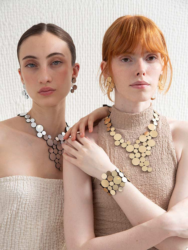 Des pièces uniques dans des matériaux de bijouterie non conventionnels, tels que le cuir, le daim et l'acrylique. Notre atelier est situé à Buenos Aires, où nous travaillons dur pour respecter les normes de qualité les plus élevées et finissons à la main chaque pièce avec du matériel moderne comme des fermetures magnétiques.